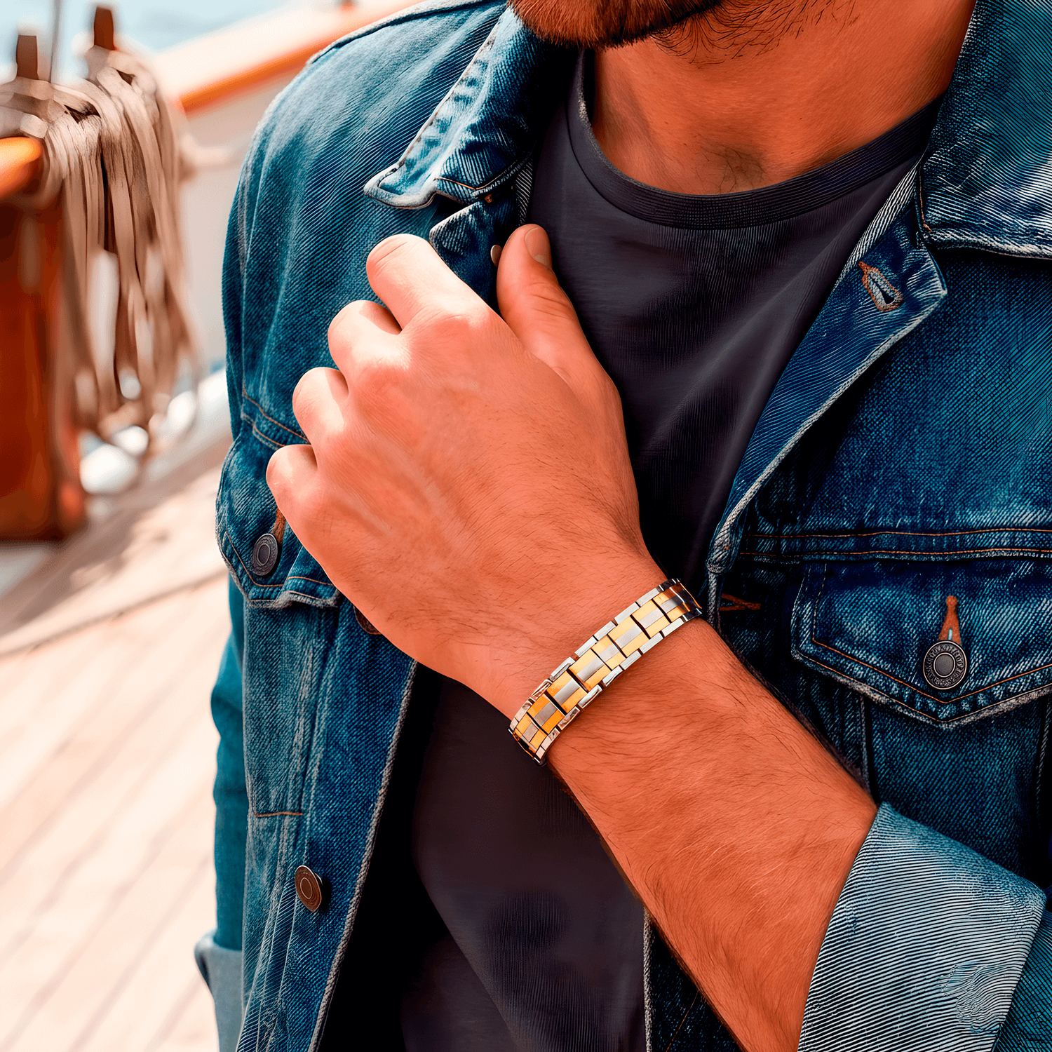 Patent-pending magnetic technology with 5X strength ellipse-shaped magnets, crafted from premium titanium and featuring an upgraded folding clasp. Engineered for superior performance and style.